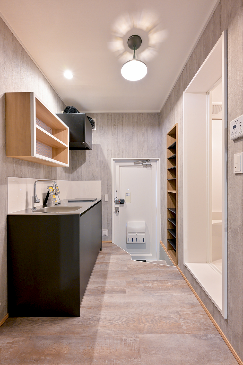デザイナーズリノベーション/プロパンガス/公営水道/下水/暖冷房エアコン/ビルトインIHコンロ1口/キッチン/レンジフード(シロッコファン)/ユニットバス/ウォシュレット付きトイレ/フローリング/LEDライト/TVモニター付インターフォン/デジタルキー/カーテン付き(遮光カーテン/遮光レース)/室内干しポール/月極駐車場あり(6,000円)/コインランドリーあり(洗濯機・乾燥機)